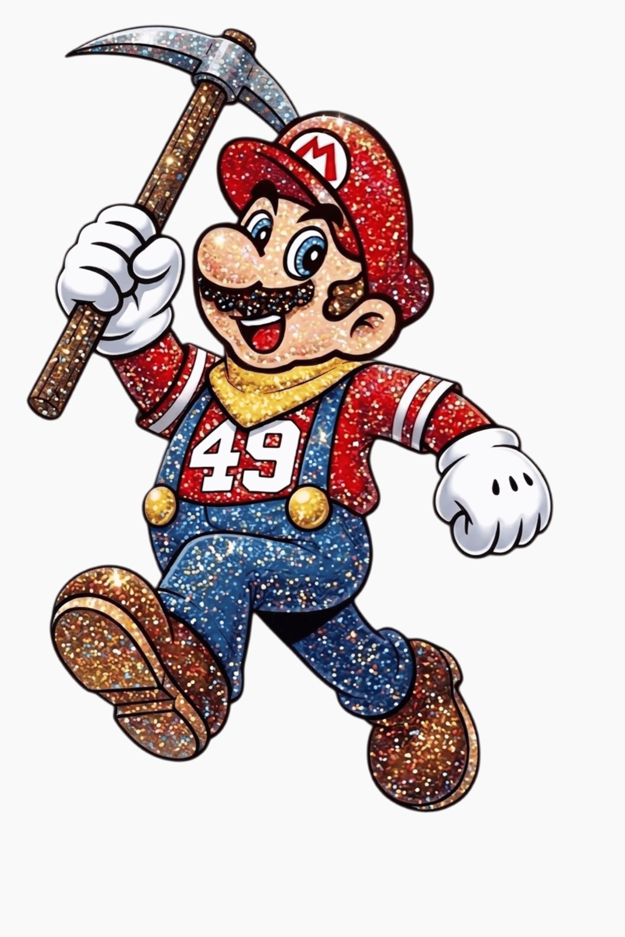 super Mario bro 2 is here and we got a new pin for ya, has glitter of course because its HIM! MARIO! first 50 orders will come with matching sticker.